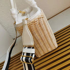 pra medium 26cm wicker and linen blend tote bag
