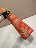 TOTE BAG 33 IN ORANGE MIX WHITE TRIANGLE PATTERN EMBROIDERED FABRIC