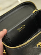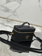 VANITY CASE 18 IN BLACK GRAINED CALFSKIN GOLD HARDWARE