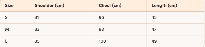 - Size : S,M,L