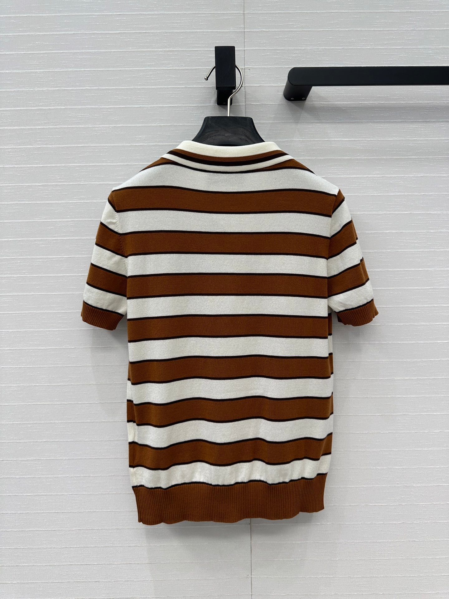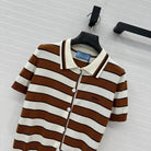 Prada 25 Striped Short-sleeved Knitted Cardigan Brown white Cotton