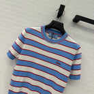 Prada 25 Striped Short-sleeved Knitted Top Blue white red Cotton