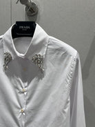 Prada Shirt with Diamond On the collar White Cotton 205898