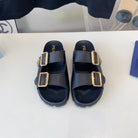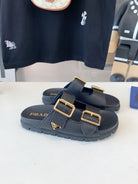 PRA STRAP SLIDES SANDALS BLACK LAMBSKIN