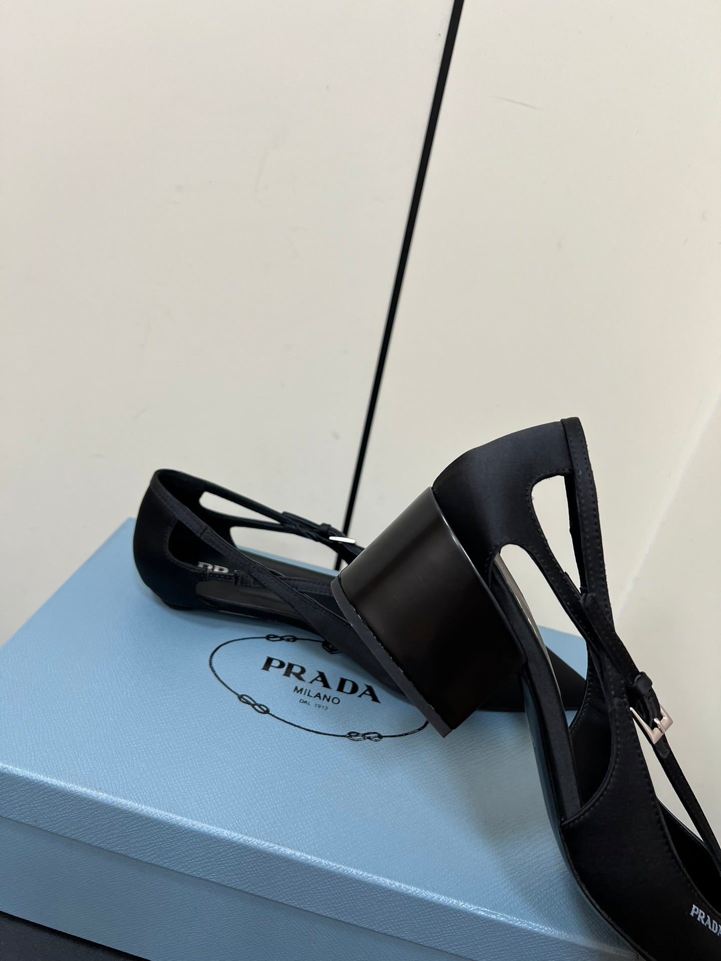 CUT-OUT PUMPS WITH BEAD BUCKLE IN BLACK SATIN