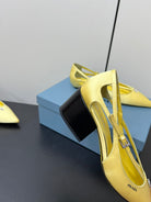 CUT-OUT PUMPS WITH BEAD BUCKLE IN LIGHT YELLOW SATIN