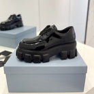 MONOLITH LACE-UP LOAFER IN BLACK GLOSSY CALFSKIN ATTACHED TRIANGLE LOGO