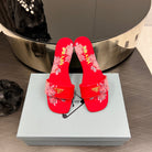 PRA PRINTED SLIDES SLIPPERS RED SATIN