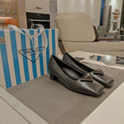TRIANGLE LOGO PUMPS IN BLACK CALFSKIN