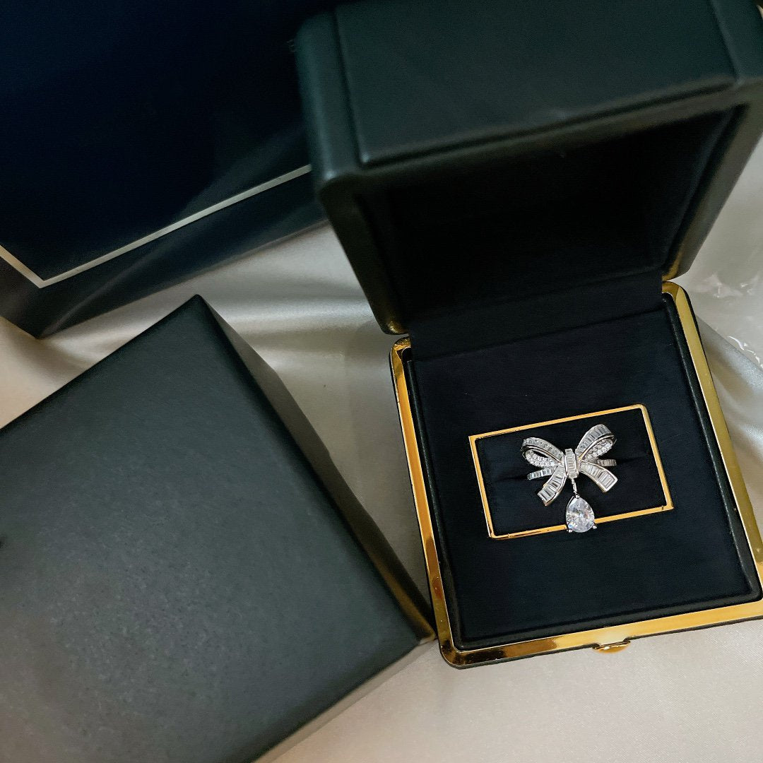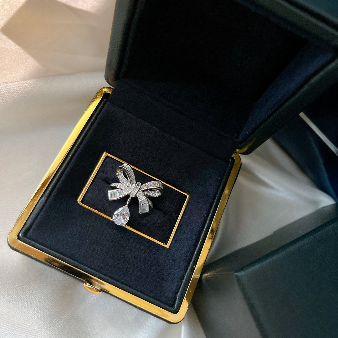 TILDAS BOW BAGUETTE CUT SILVER DIAMOND DROP RING