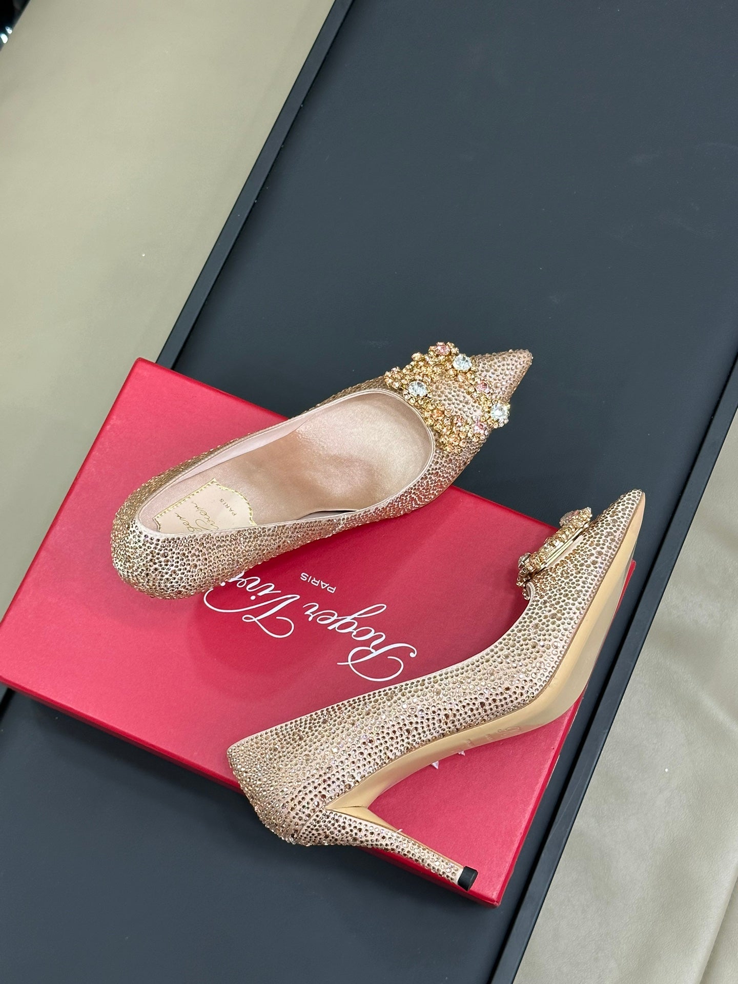 Flower Strass Buckle Pump 85 Crystal Rose Cannelle Leather