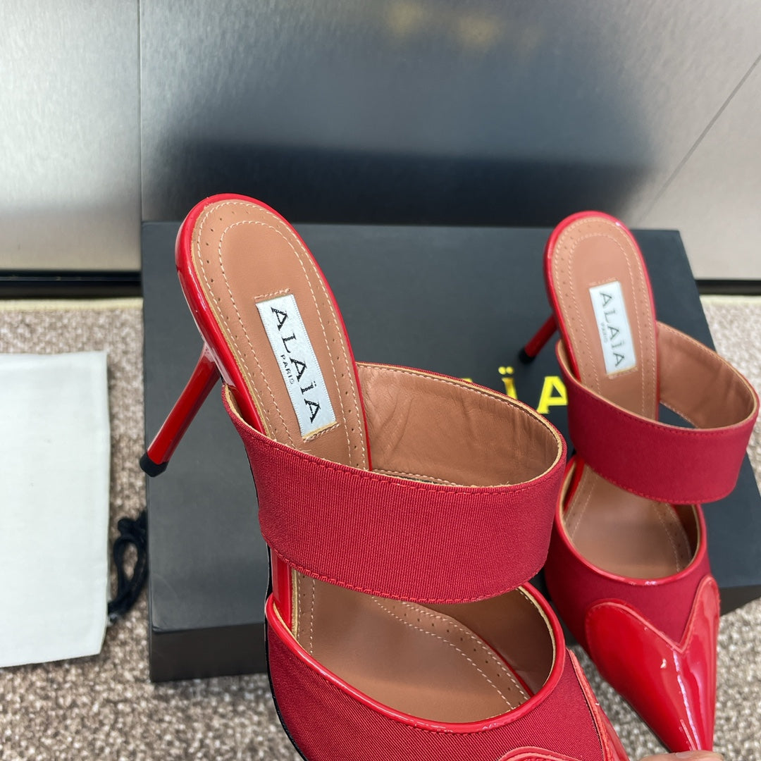 alaia mule 90 red grosgrain heart patent calfskin