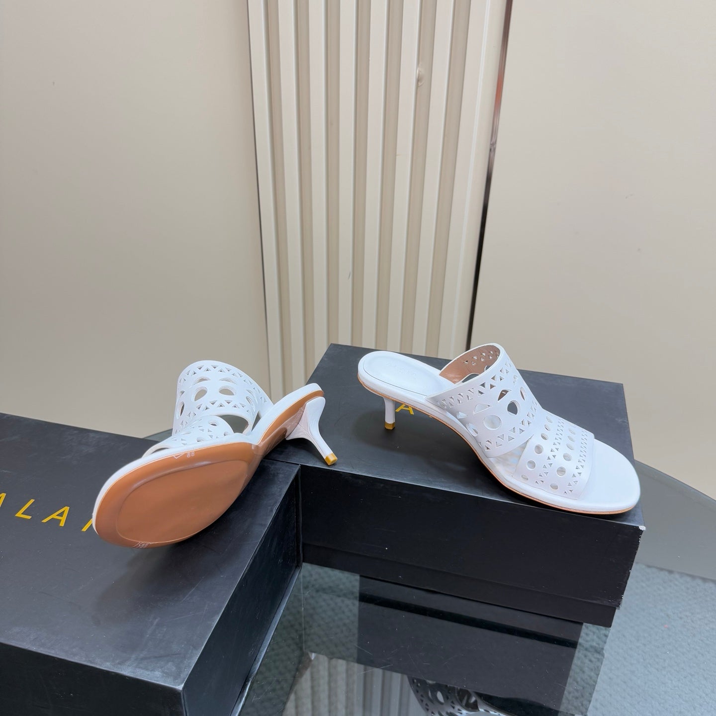 Alaia Vienne Cutout Kitten-Heel Slide Sandals White Sheepskin 299663