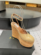 Alaila Wedge Sandals 115mm In Beige Glossy Lambskin 954881