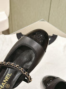 cc mule leather chain black calfskin patent calfskin