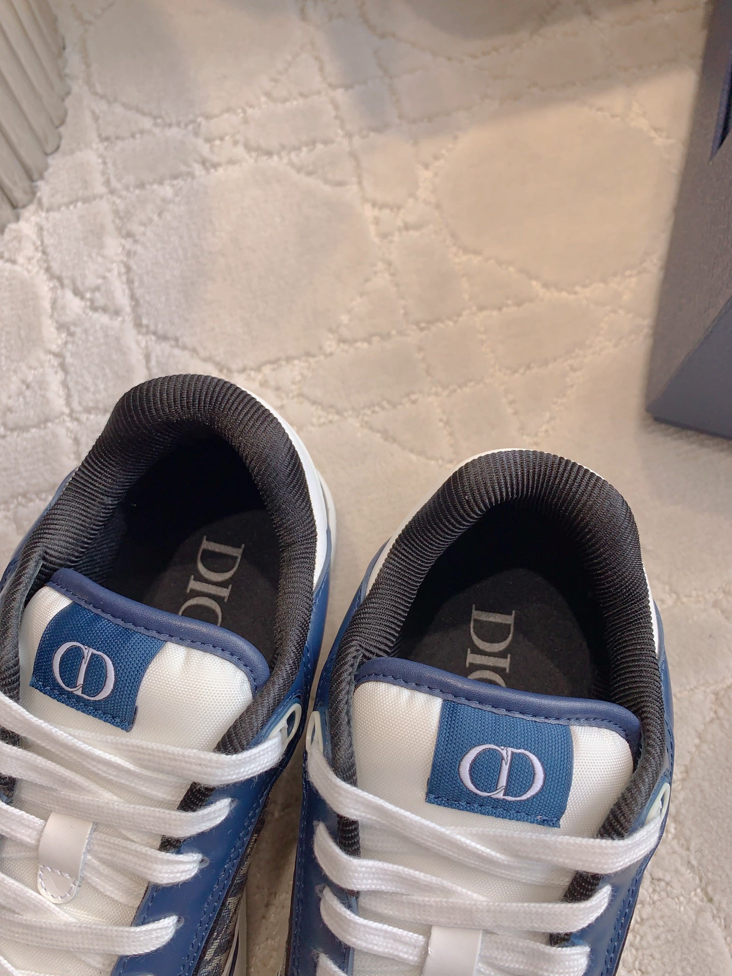 CD B27 Low-Top Sneaker White Blue Print Calfskin And Oblique Jacquard Fabric
