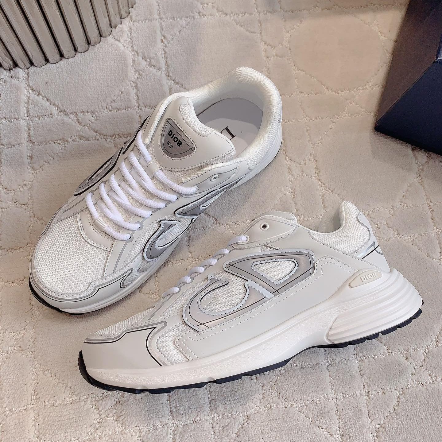 CD B30 Sneaker Milky Beige Mix Grey Black Polyester Mesh Fabric And Calfskin