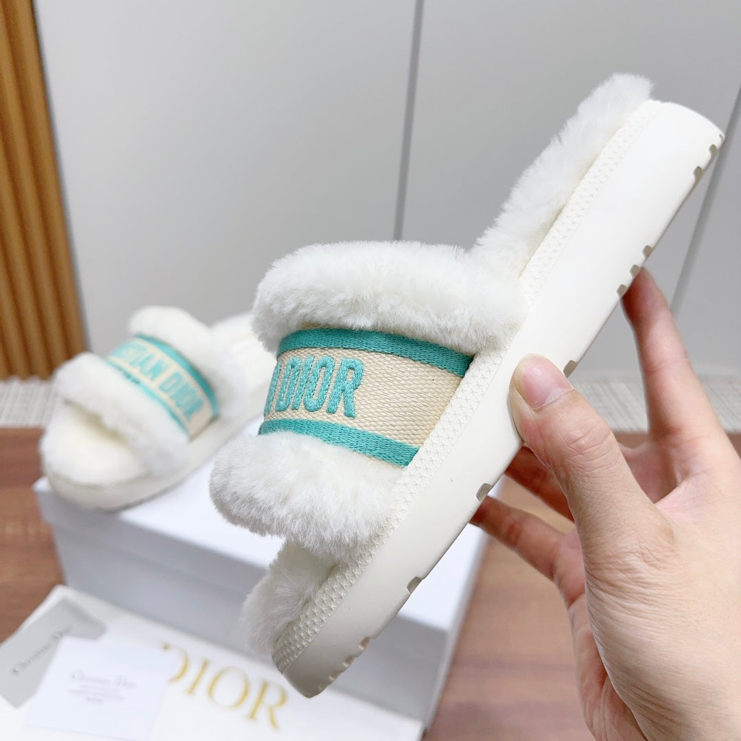 CD Dway Slide White Jade Green Fleece Lining And Canvas Fabric