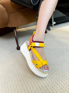 CHLOÉ NAMA WEDGE SANDALS IN BRIGHT YELLOW FABRIC AND WHITE RUBBER