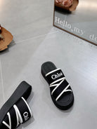 CHLOÉ PLATFORM SANDALS IN BLACK MIX WHITE DENSITY KNIT