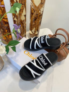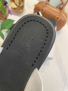 CHLOÉ WOODY WEDGE SANDALS IN BLACK MIX WHITE CANVAS WITH RUBBER SOLE