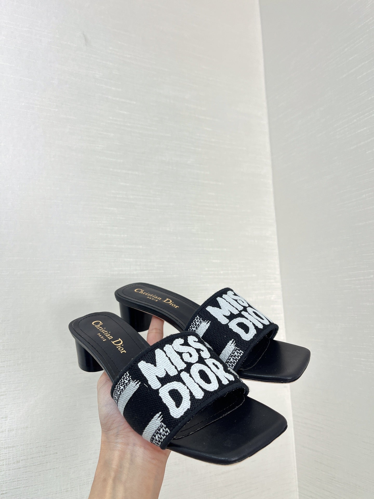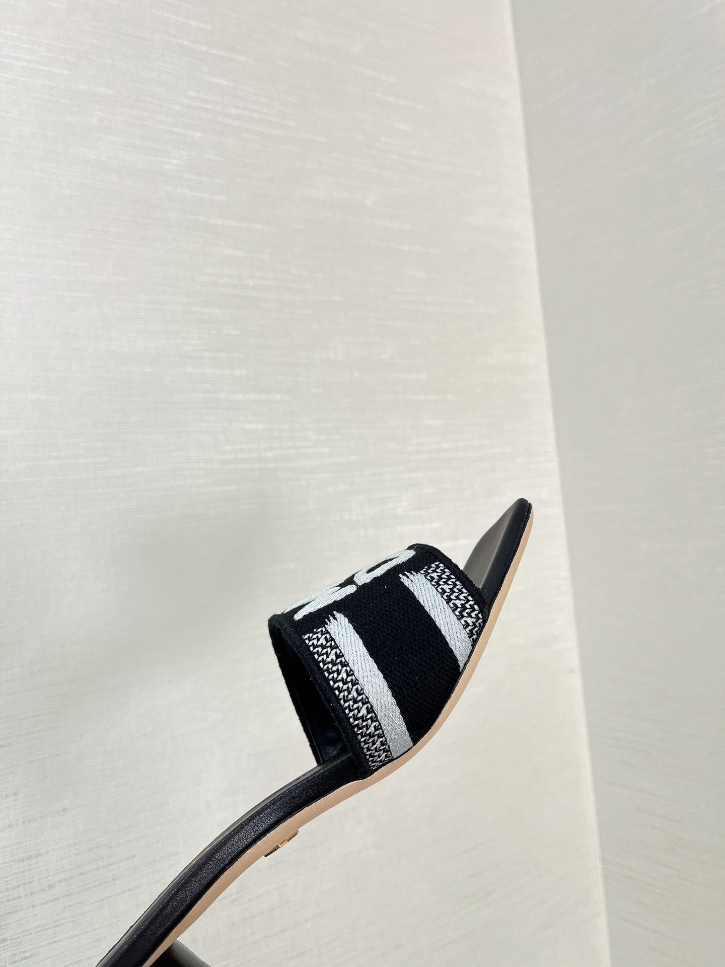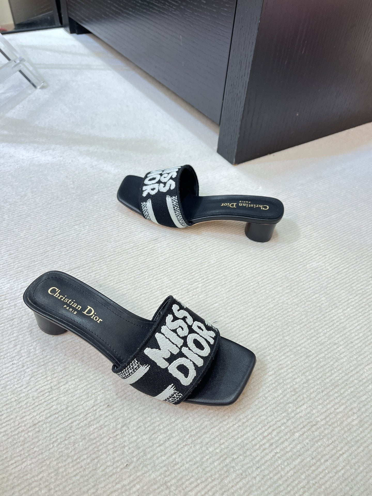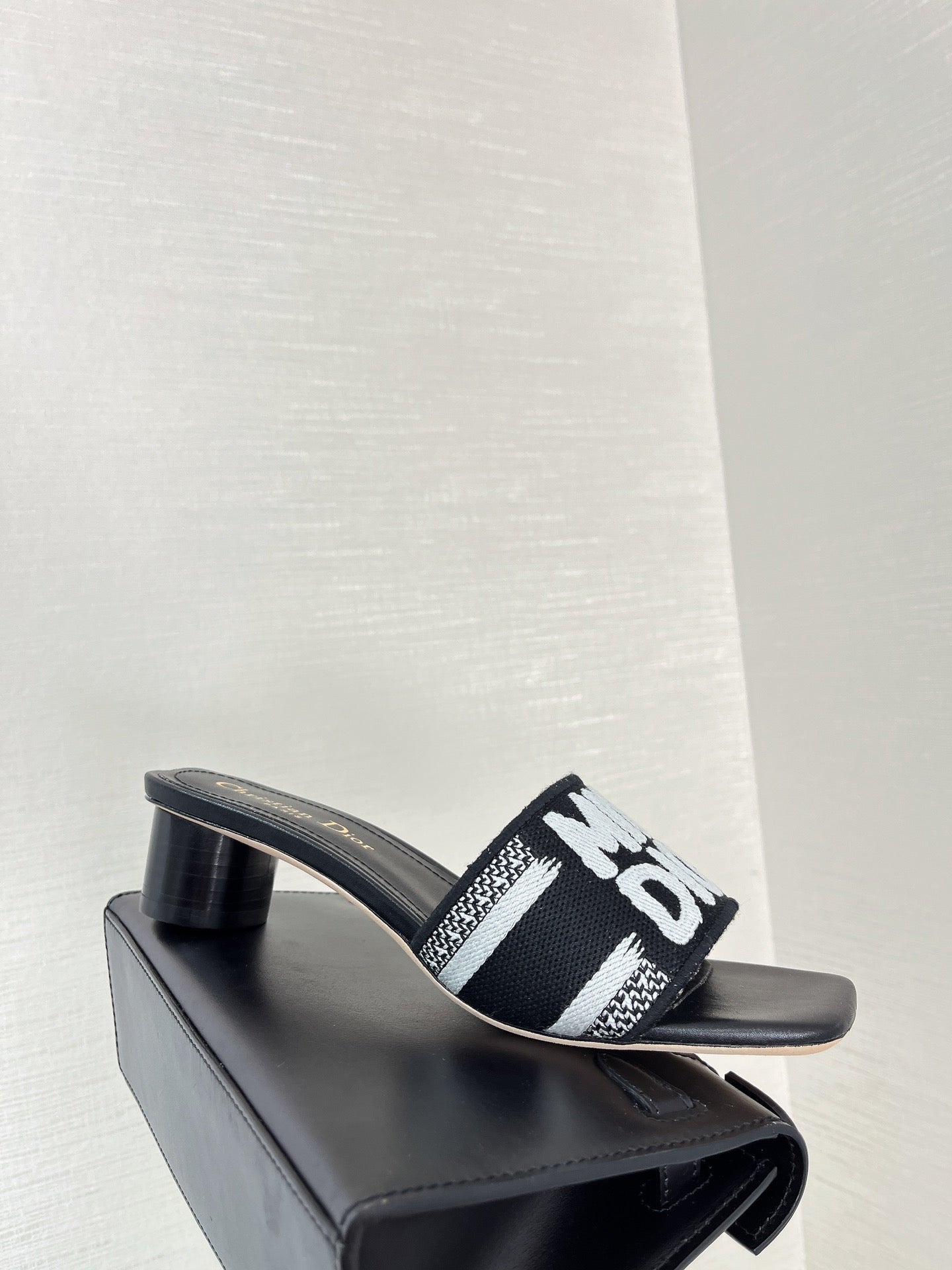 dway heeled slide 35 black embroidered cotton