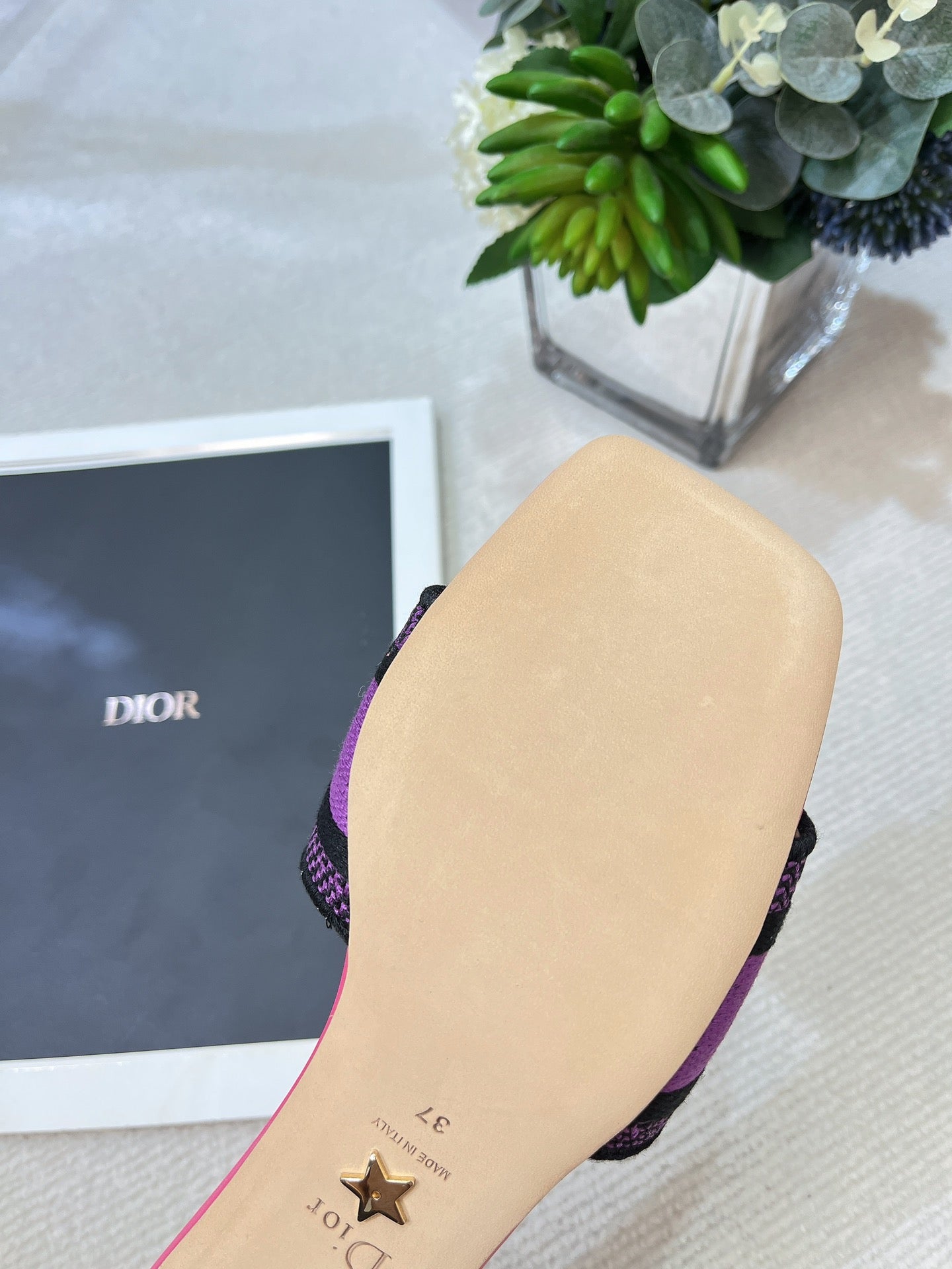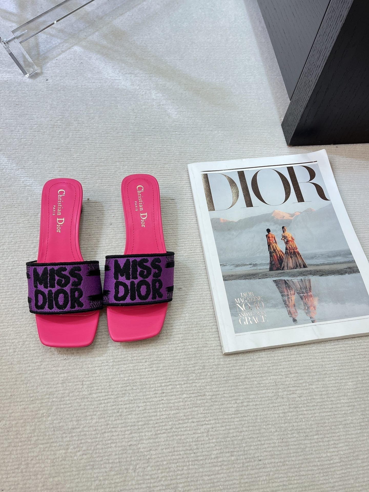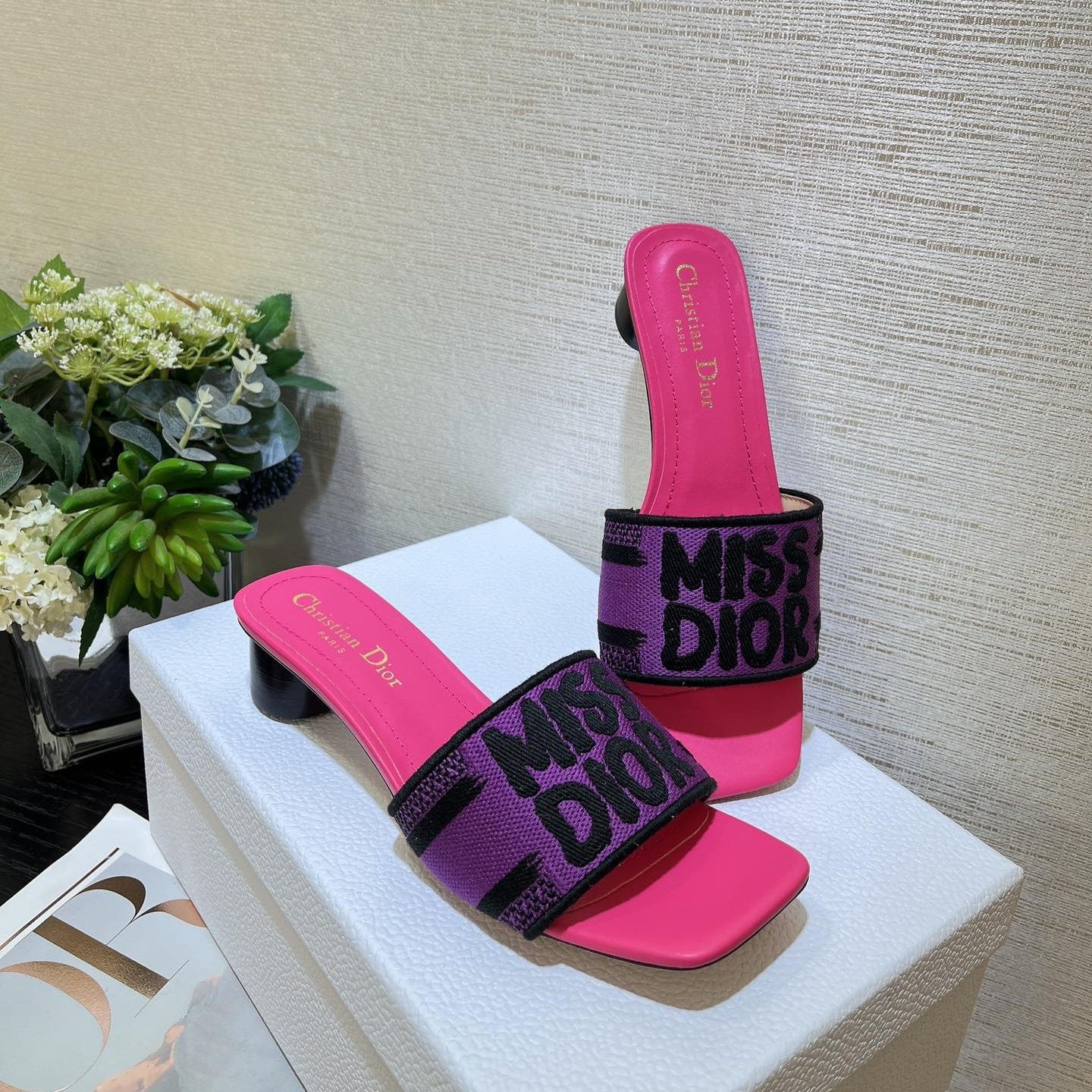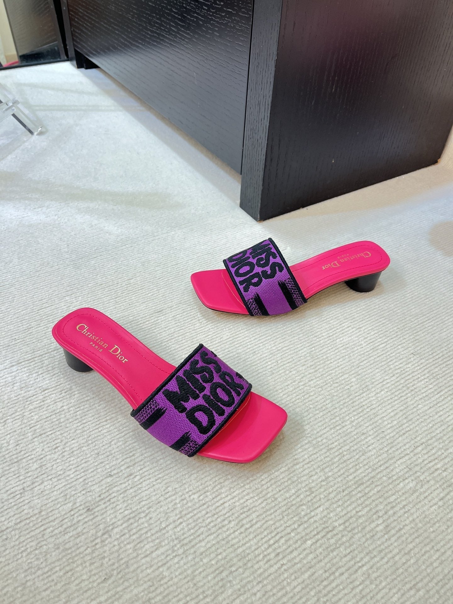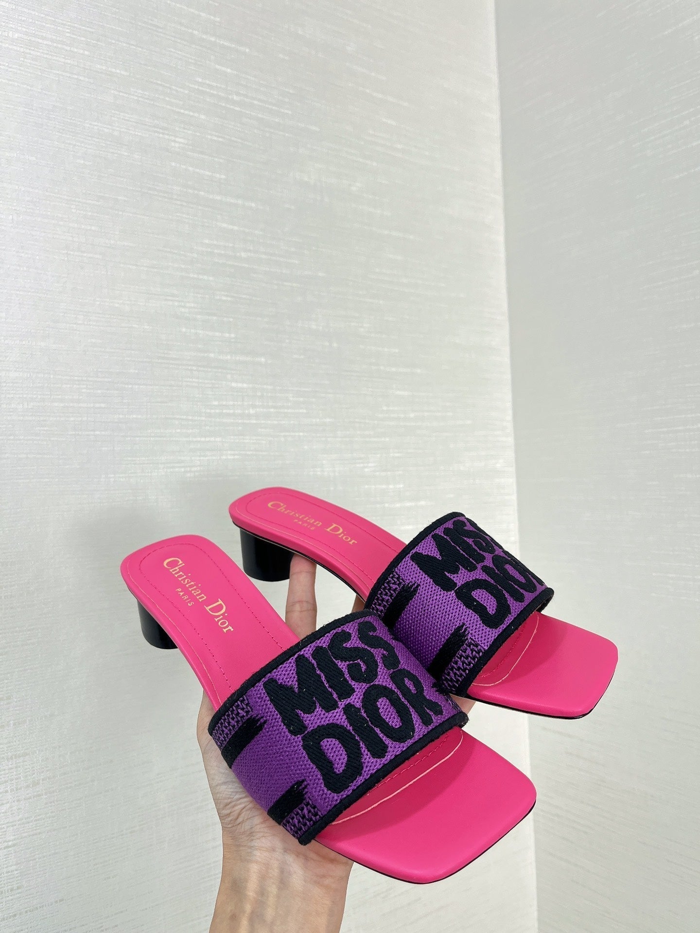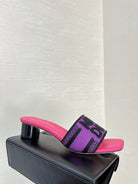 dway heeled slide 35 purple red embroidered cotton