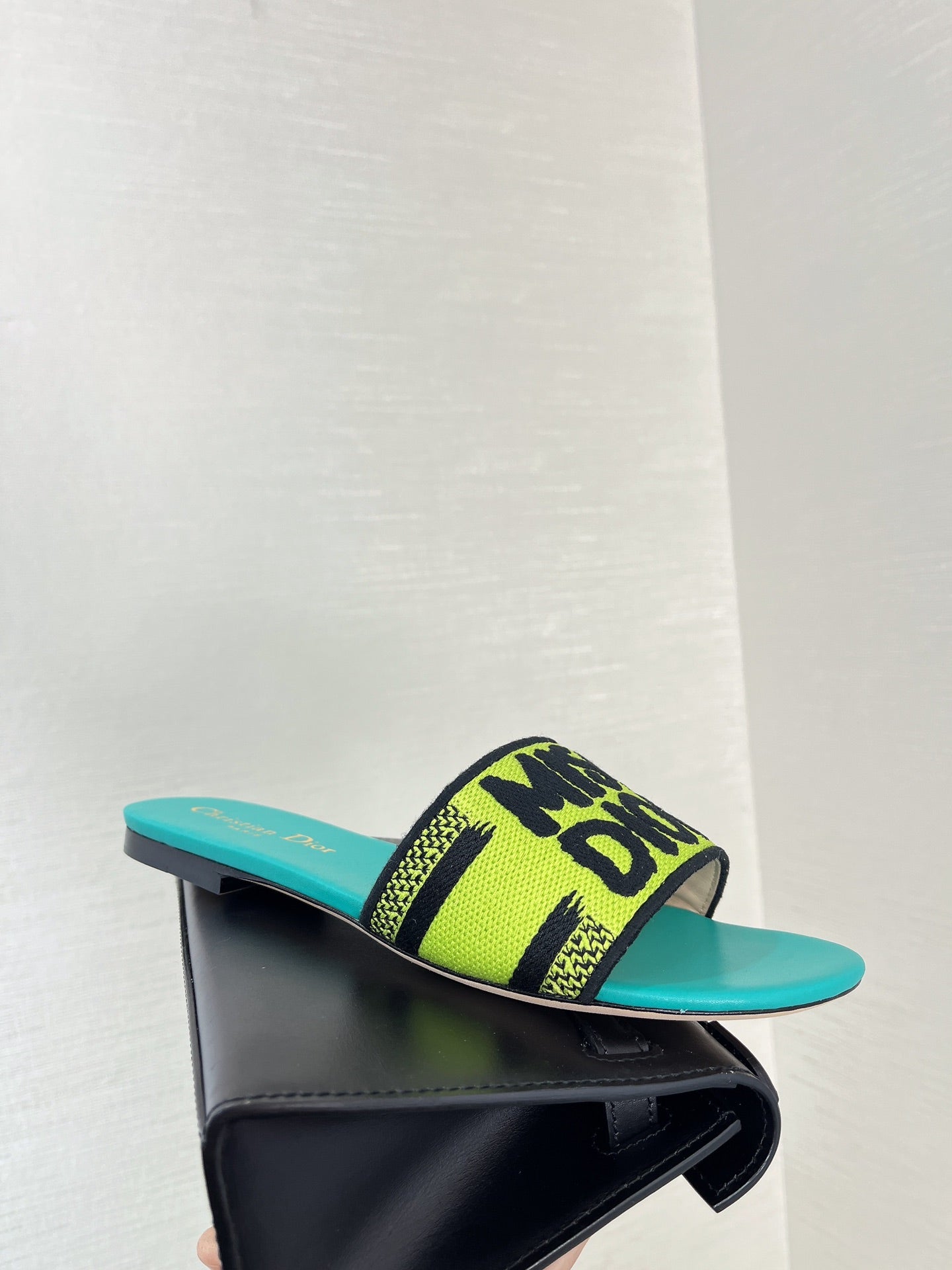 dway slide embroidered lime blue cotton