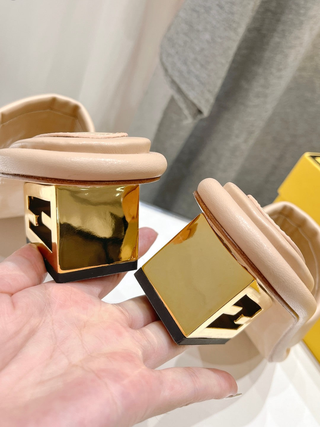 FENDI BAGUETTE MEDIUM-HEEL SANDALS 45 MM IN BISQUE BEIGE CALFSKIN
