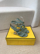 FENDI HIGH SANDAL 10 CM IN SAGE GREEN CALFSKIN