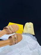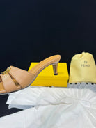 FENDI MEDIUM-HEELED 55 MM MULE IN BRONZE BROWN LAMBSKIN WITH GOLD HARDWARE
