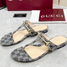 GC 25 Horsebit Thong Sandals Gray Canvas Leather 293854