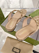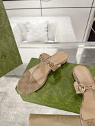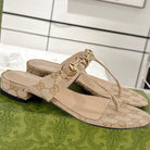 GC Horsebit Thong Sandals Beige Canvas Leather 292475
