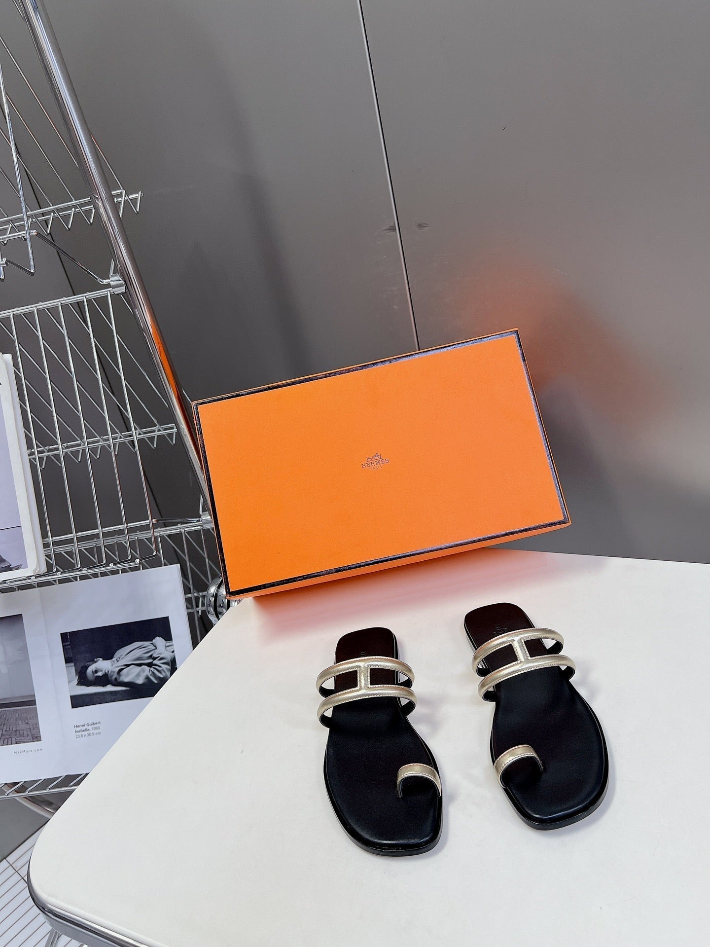 Georgia Sandals Gold Black Calfskin