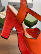 GG 120 INTERLOCKING G SANDAL ORANGE CALFSKIN