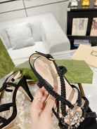 GG CRYSTAL HIGH HEEL SANDAL BLACK CALFSKIN SPECIAL