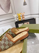 GG EXCLUSIVE SLIDE SANDAL CARAMEL AND GRAY FABRIC