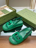 GG INTERLOCKING G CUT OUT SANDAL JADE GREEN LAMBSKIN