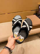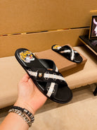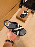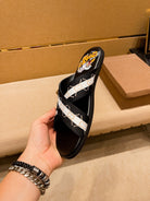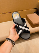 GG Men's Sandals Slide Black Leather 587233