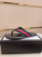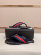 GG Men's Thong Web Black Blue Cowhide 554610