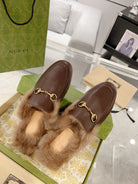GG Princetown Slipper Brown Calfskin Tuscan Wool