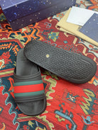 GG WEB SLIDE SANDAL BLACK RUBBER