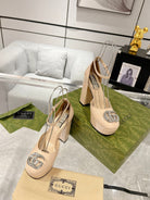 HIGH SANDAL SQUARE HEEL 12 CM IN TAN BEIGA CALFSKIN