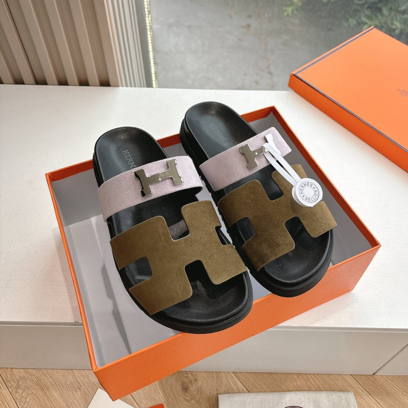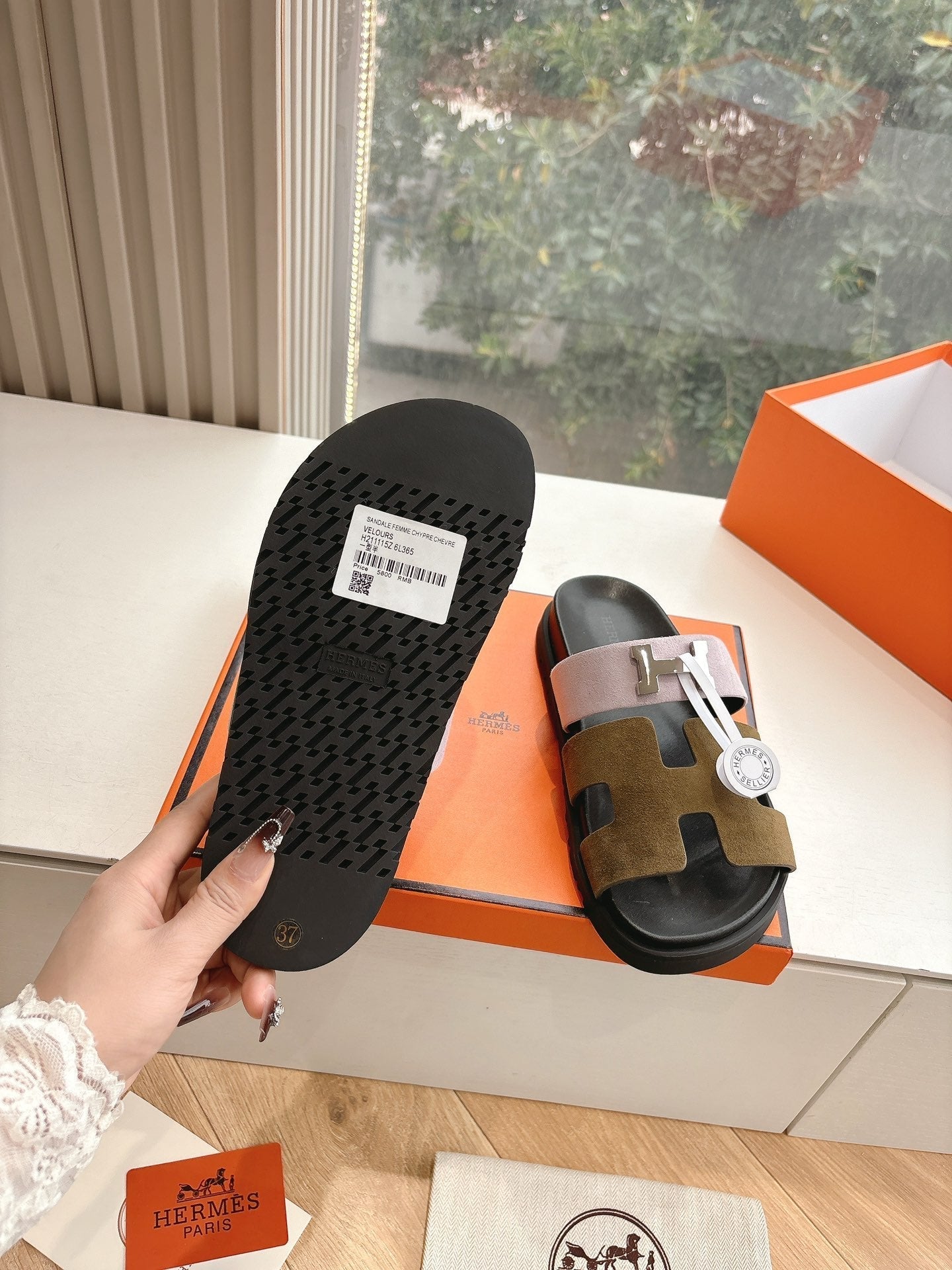 HM 25 Chypre Sandal Pink Vert Toundra Suede Calfskin Silver H