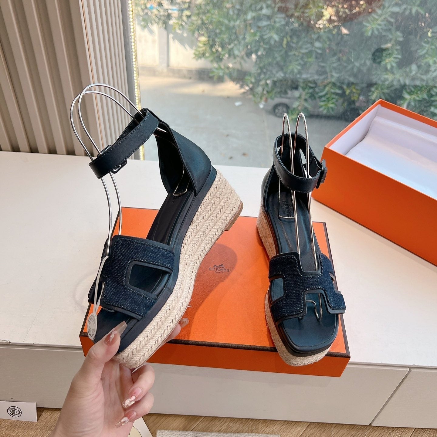 HM 25C Elda espadrille Bleu Brut Denim and Goatskin 202833