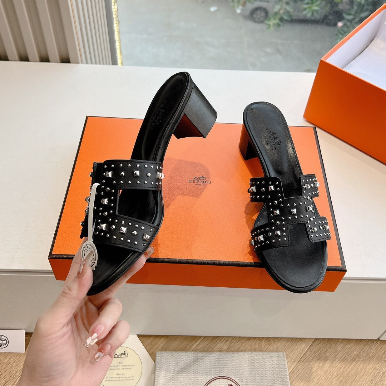 HM 25C Oasis sandal Black Leather with Studs 202838
