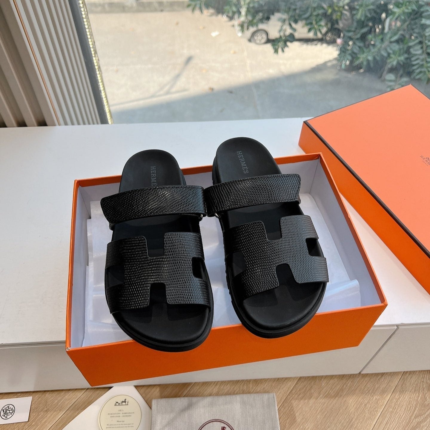 HM Chypre Sandal Black Grained Calfskin 202797