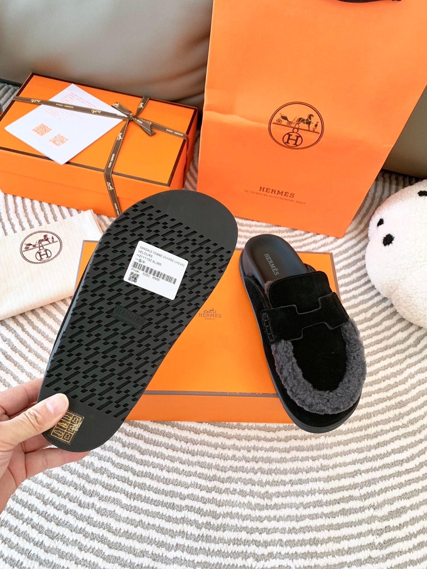 HM Go Mule Black Mix Grey Black Suede Lined With Wool Fleece 963221