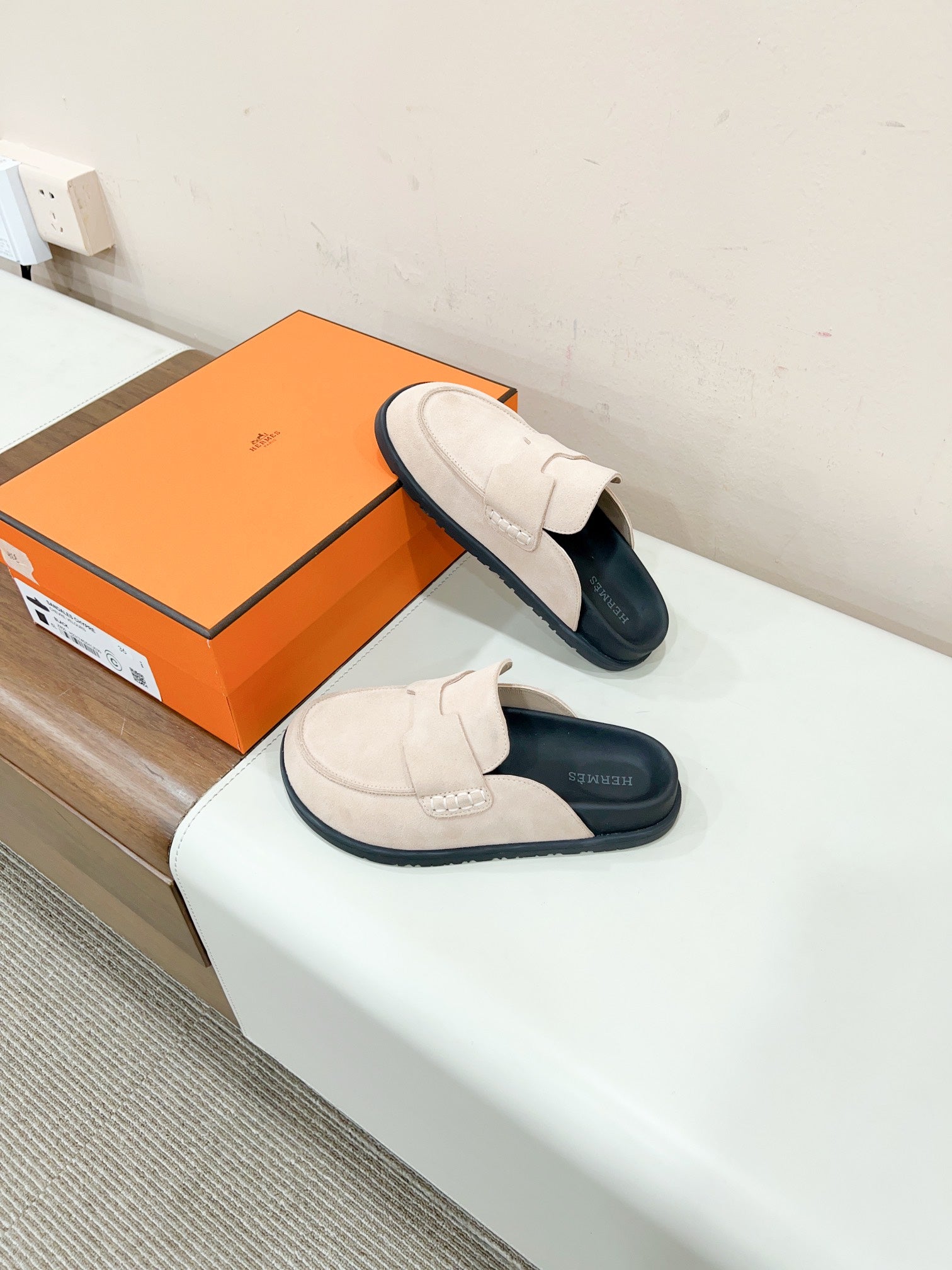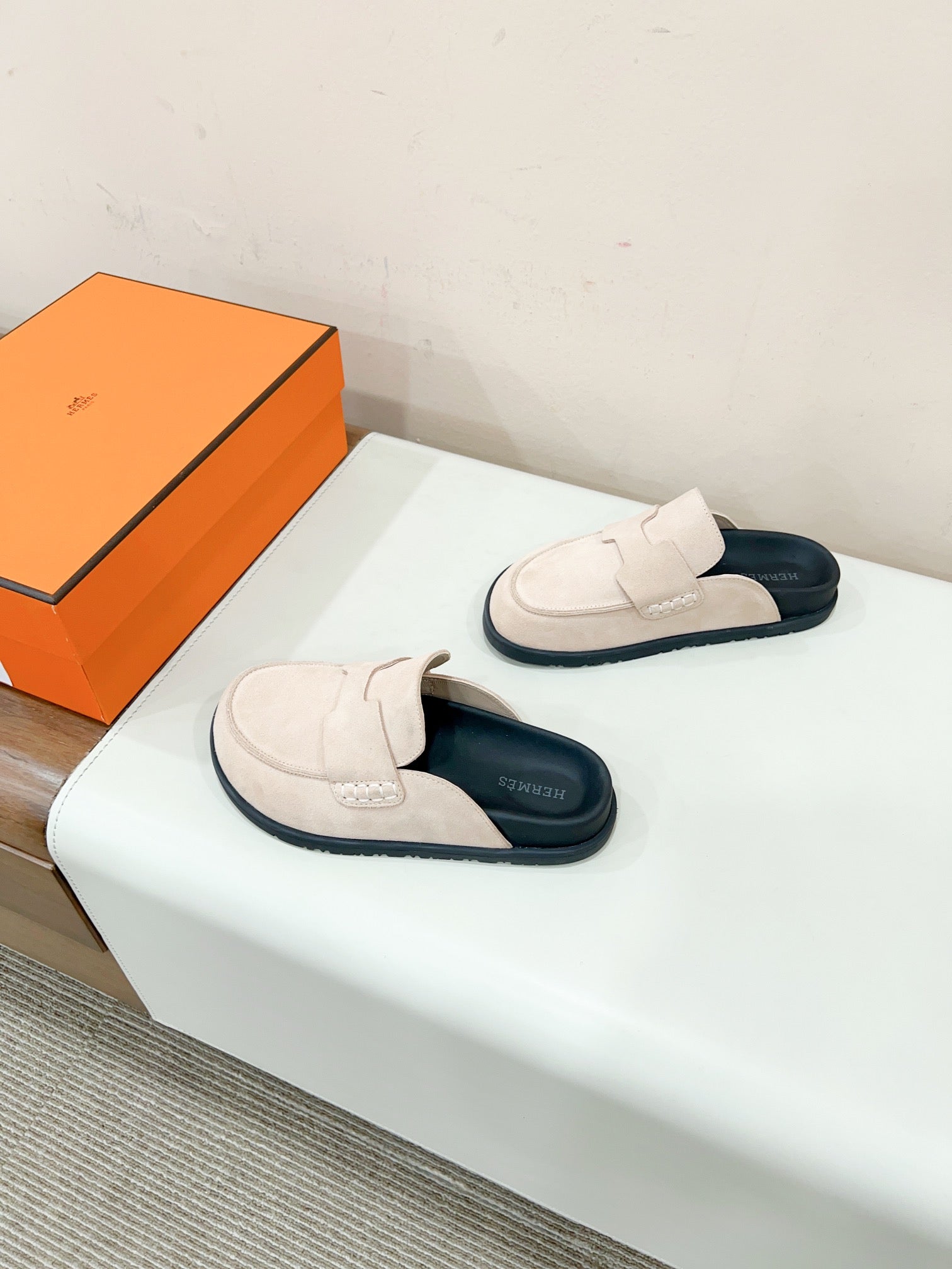 HM GO MULE CREAM SUEDE