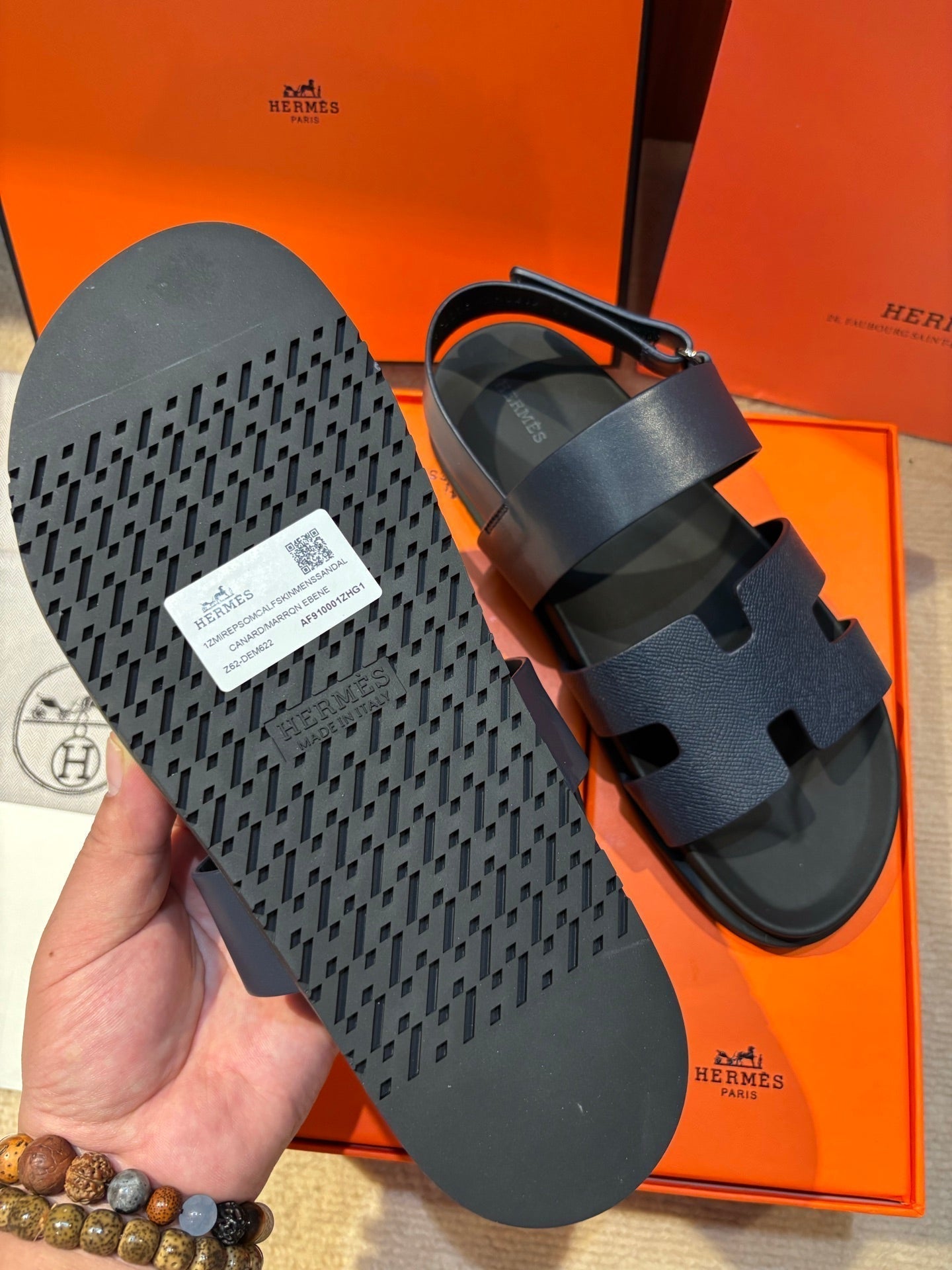 HM Men's 25 Chypre Sandals Navy Blue Calfskin 673759